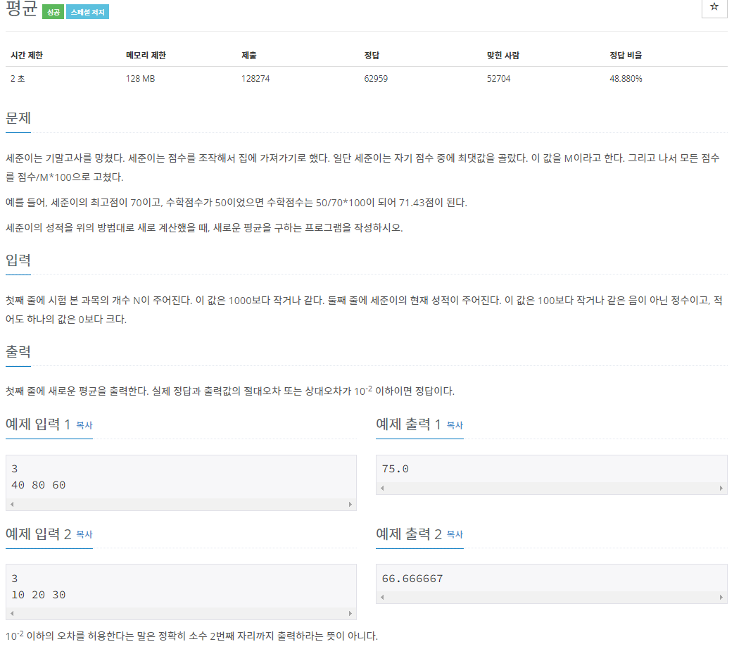 - StringTokenizer를 사용하여 각 점수들을 배열에 저장하면서 최대값도 구하였습니다.