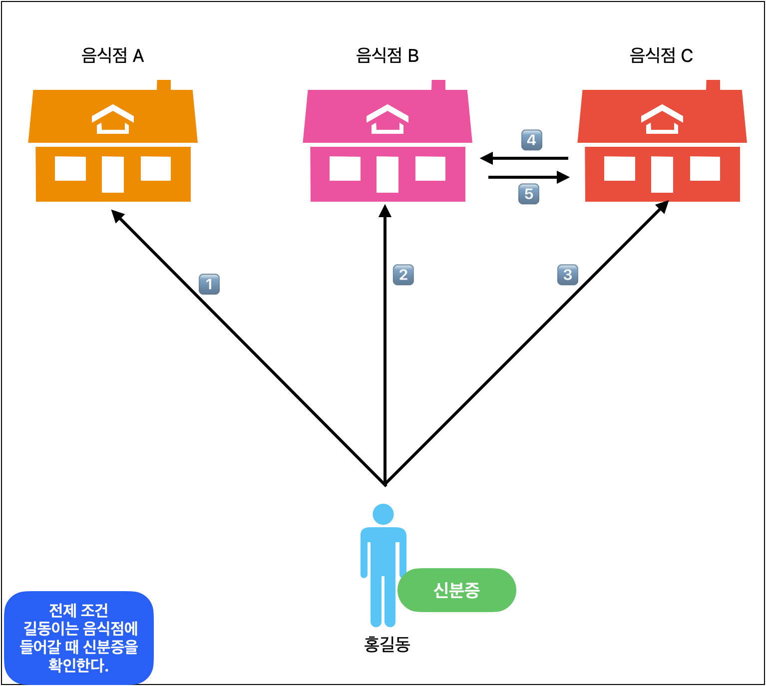 1). 홍길동이 음식점 A에 방문하여 신분증 검사를 하였습니다.