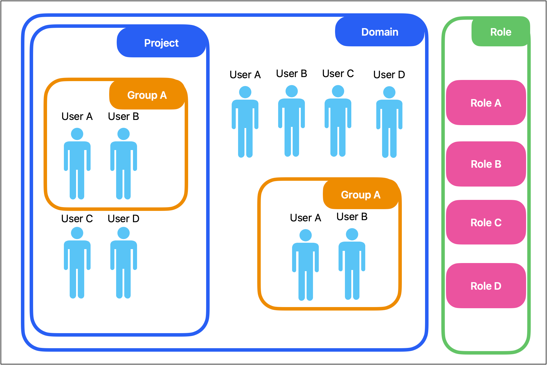 여러 User를 묶어 관리할 수 있는 개념으로, 사용자 집합을 관리하는 단위 - AWS IAM 사용자 그룹 유사 - Domain 내에서 관리 - Role은 그 그룹에 속한 모든 User에게 적용 |