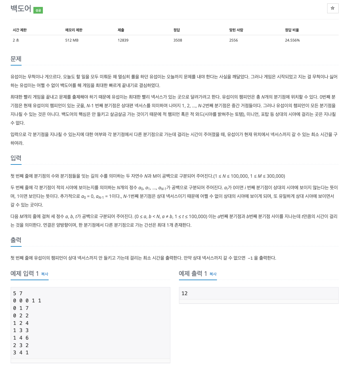 2. M개의 길은 양방향이며, t만큼의 시간이 걸리게 됩니다.