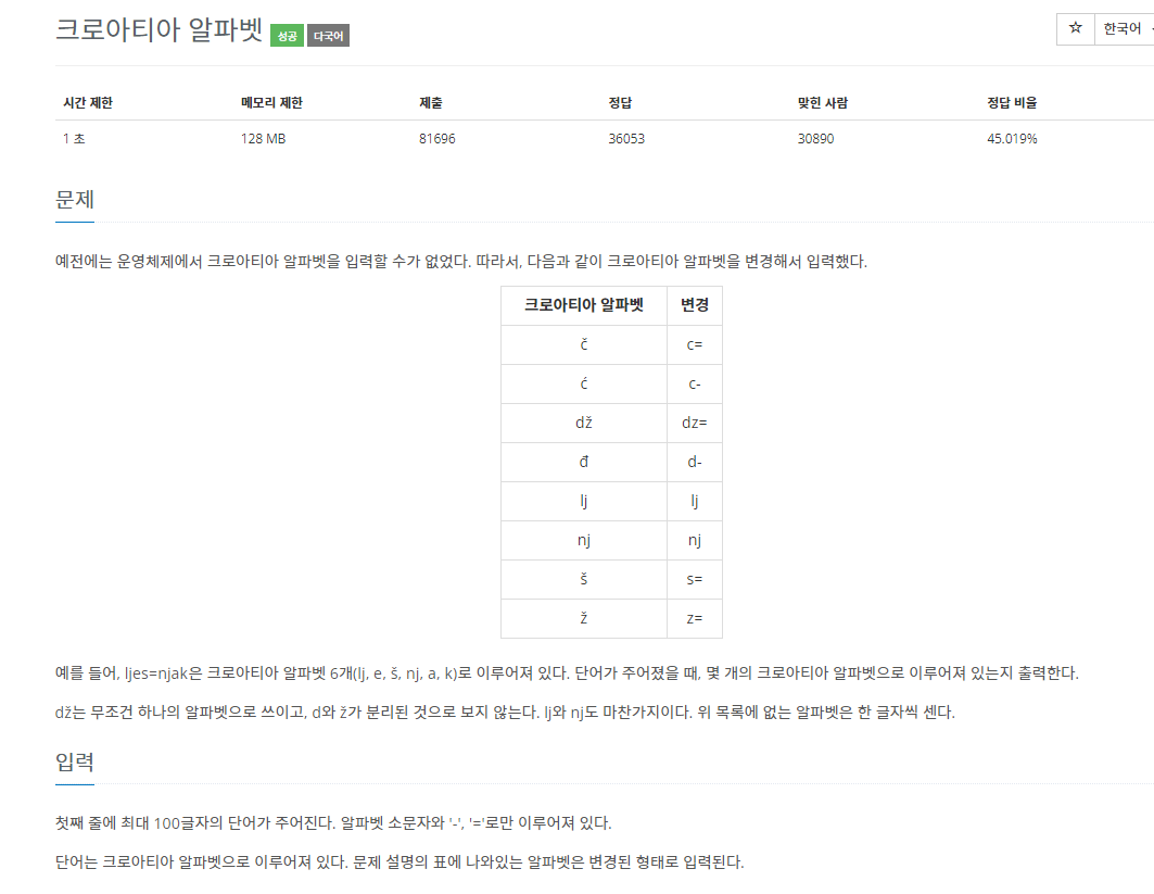 - 표현할 수 없는 크로아티아로 묶어진 알파벳을 '1'로 대체하는 croatiaAlphabet 함수를 만들었습니다.