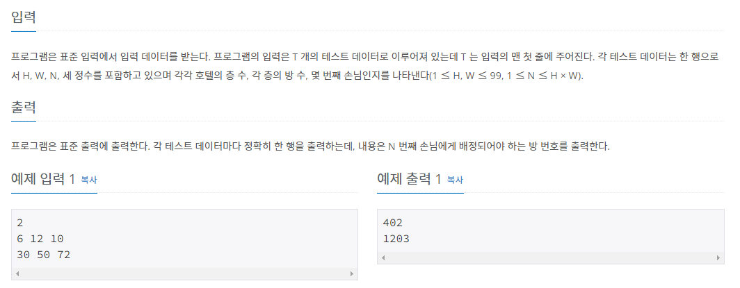 int room = (int)Math.ceil((double)num/height); //방 번호 및 방 번호 구하는 식