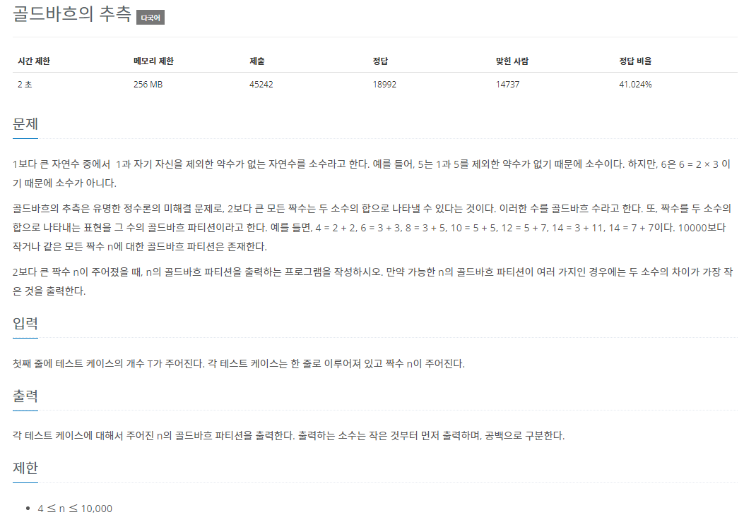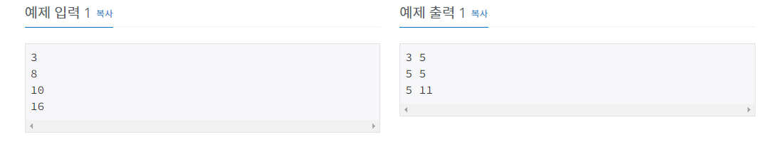 - for문을 반복하여 입력값에 대하여 두 소수를 구하였습니다.
