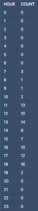 ORDER BY HOUR;