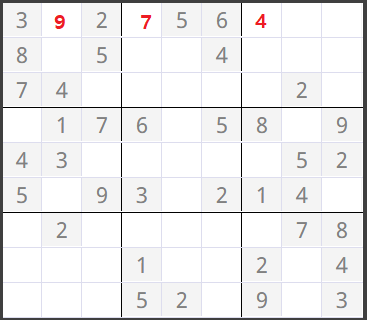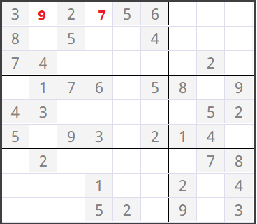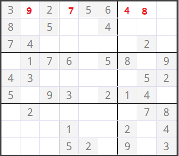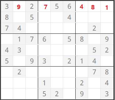 (0,3)이 0이었어서 numCheck를 한 결과 1~9까지 숫자중 7,8이 들어갈 수 있다고 판정되어 작은 수 7이 들어갔습니다.