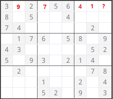 (0,1)이 0이었어서 numCheck를 한 결과 1~9까지 숫자 중 9가 들어갈 수 있다고 판정되어 9가 들어갔습니다.