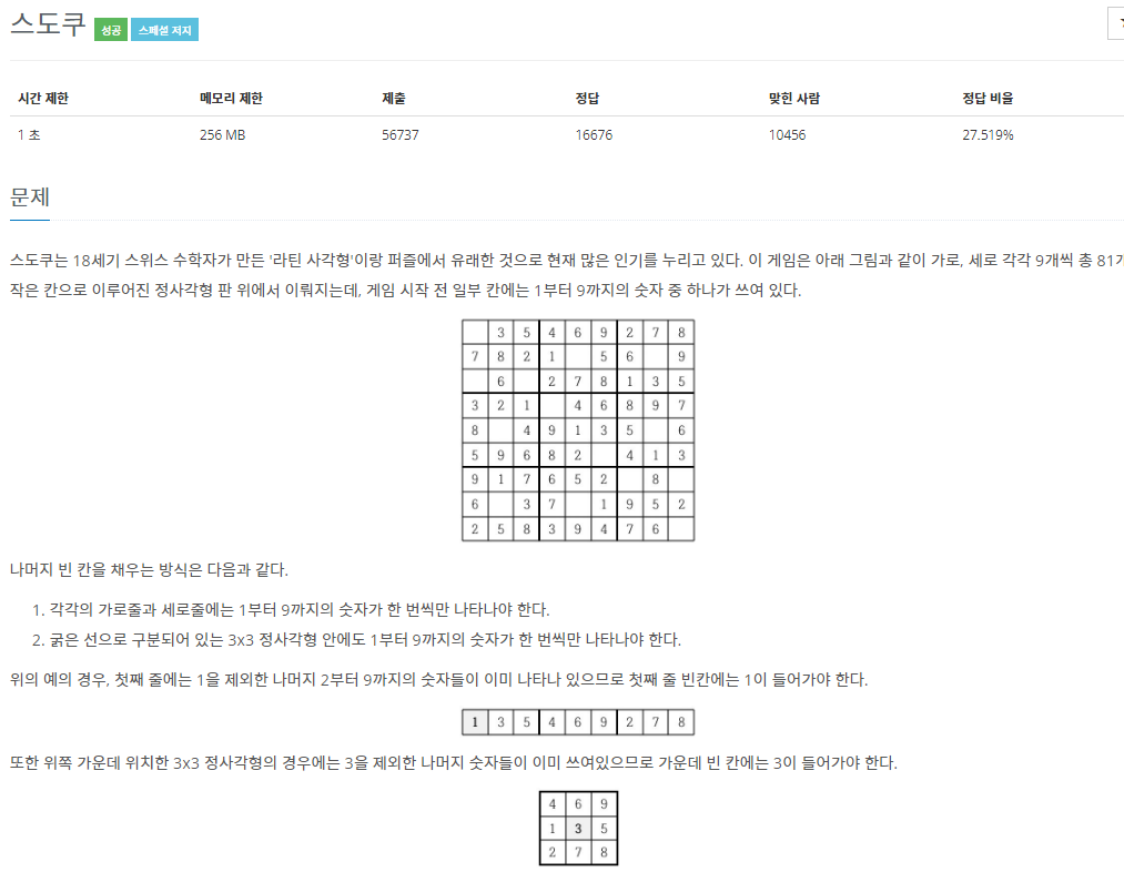 스도쿠는 기본적 규칙은 문제에 대한 설명과 동일합니다.
