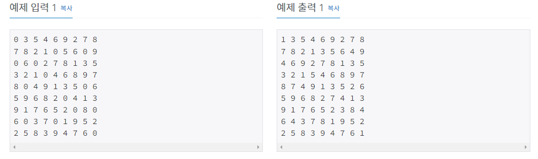 (0,7)이 0이었어서 numCheck를 한 결과 1~9까지 숫자중 1이 들어갈 수 있다고 판정되어 1이 들어갔습니다.