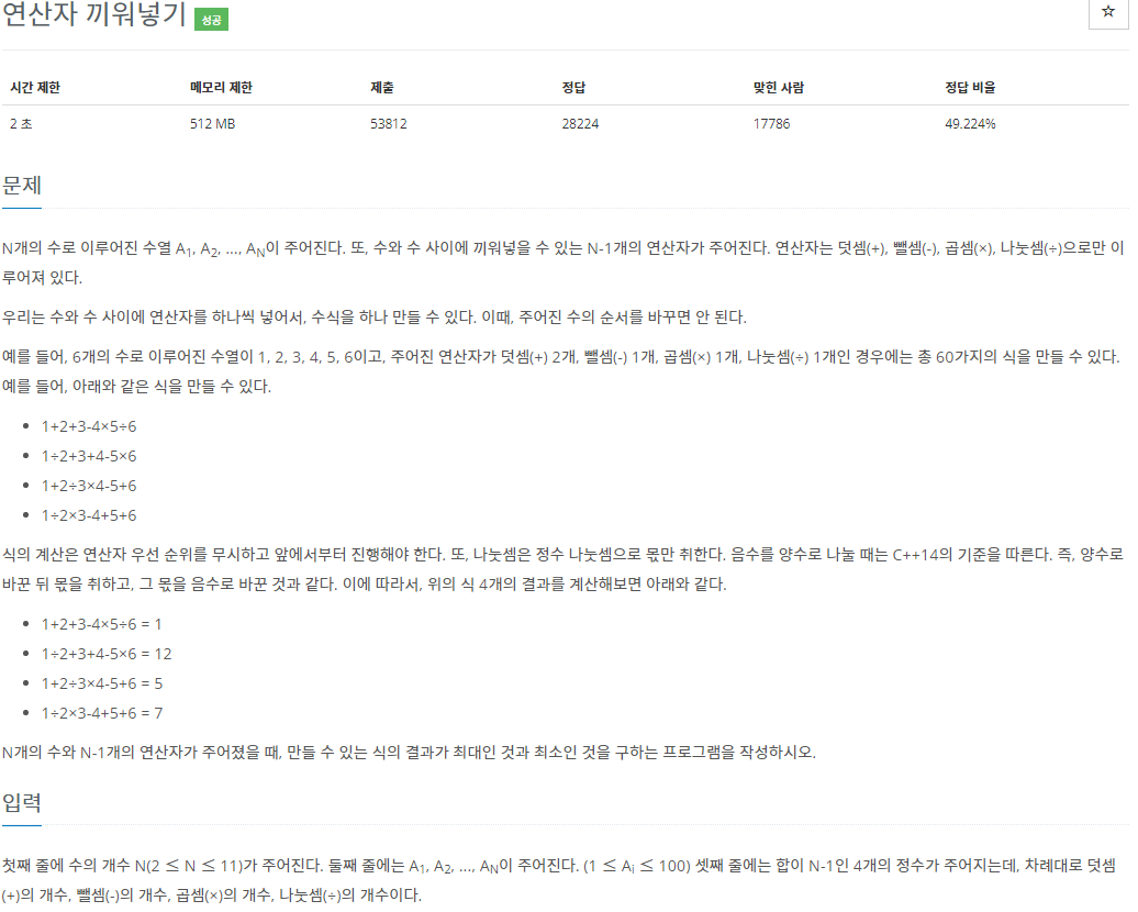 - 연산자를 끼어넣어 최대값 및 최소값 구하는 함수 operatorInsert을 만들었습니다.