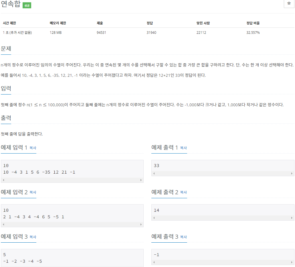 - System.out.println을 사용하여 연속합의 최대값을 출력하였습니다.