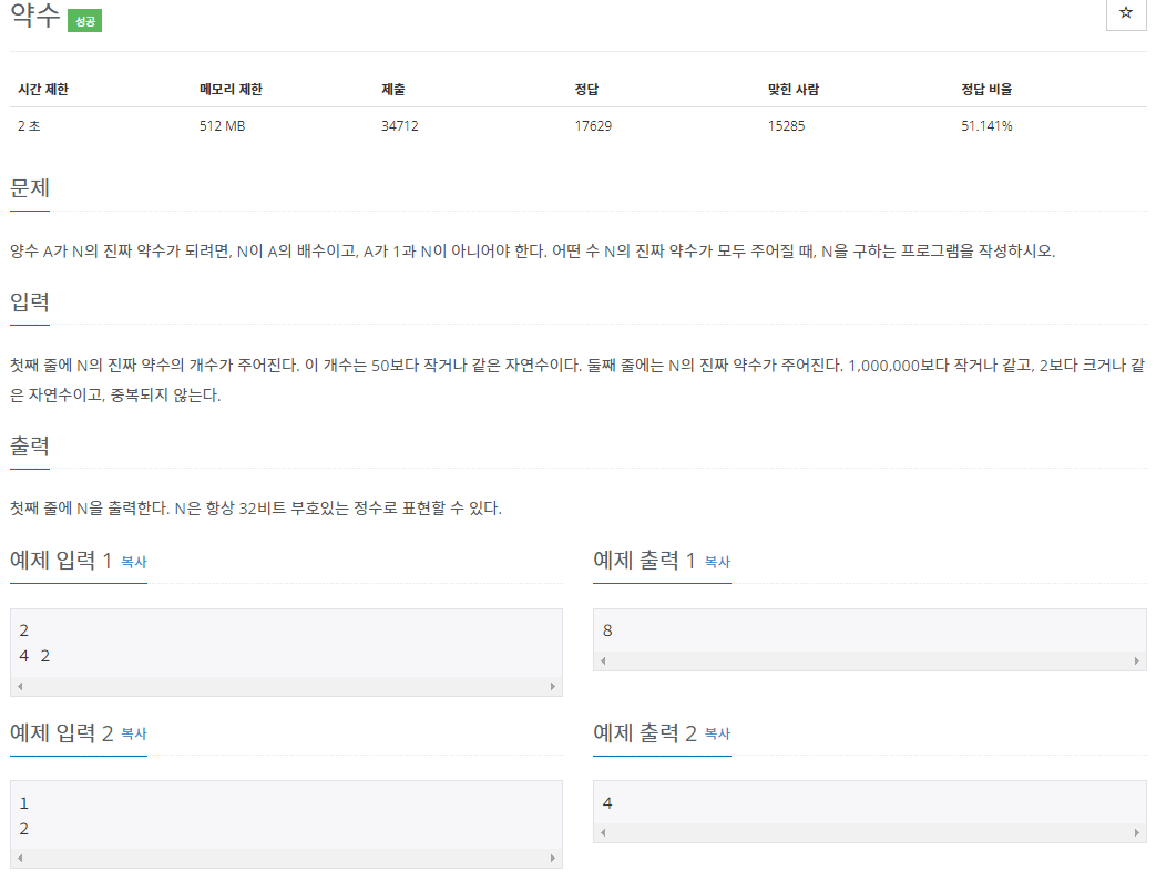 | [백준] 단계별로 풀어보기(단계:17,정수론 및 조합론,JAVA)1037번, 약수 (0) | 2022.02.03 |