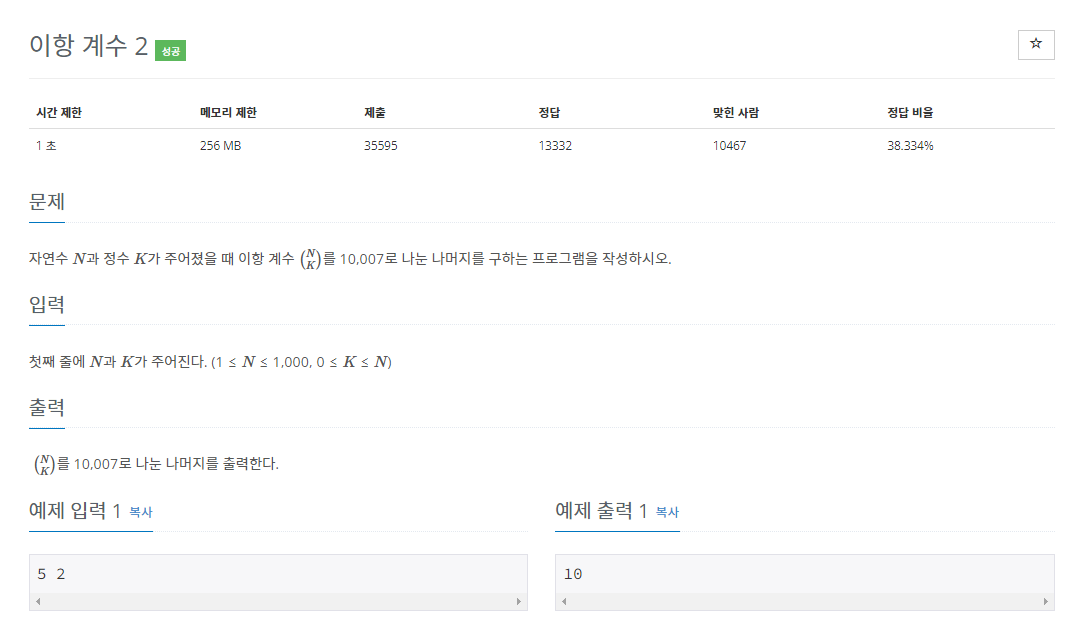 - 문제에서 결과가 10007의 나머지를 구해야하기 때문에 결과를 반환할 때 나머지를 메모이제이션에 저장하였습니다.