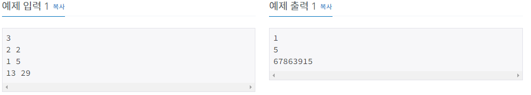 - for문을 통해서 각 줄마다 받은 입력값들에 대한 이항계수를 구하도록 하였습니다.