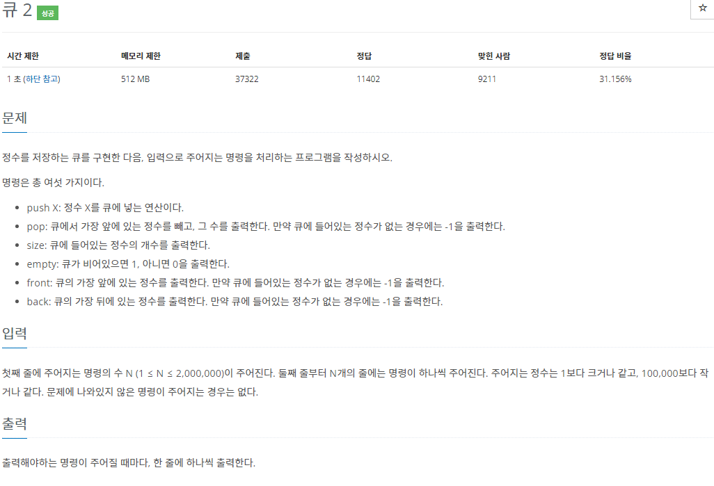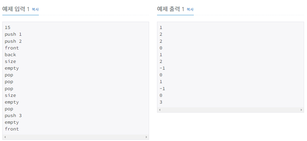 문제에서는 push, pop, size, empty, front, back을 구현하도록 했기 때문에 각각의 기능을 함수로 구현하였습니다.