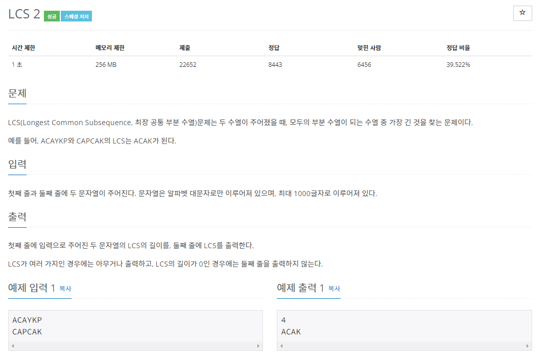 위 과정을 통해 DP[][]값을 구성한 뒤 DP[str2.length][str1.length]의 값이 최대 수열의 길이를 가지게 됩니다.