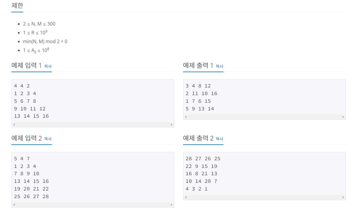 16926번: 배열 돌리기 1