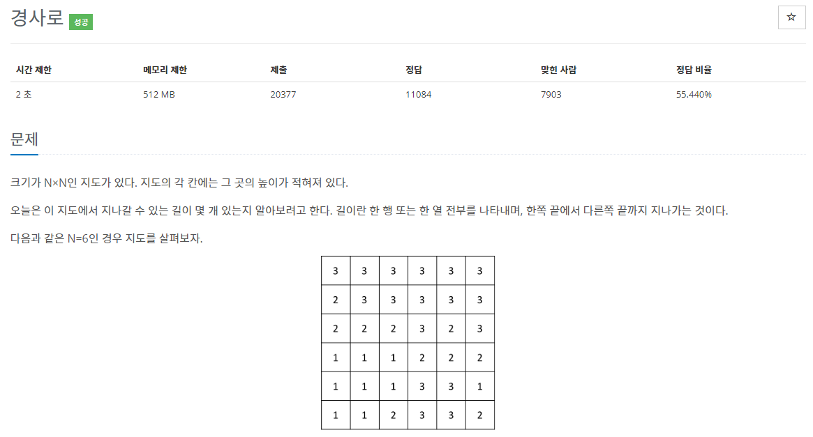 결과적으로 경사로를 설치하면 3 -> 1로 이동할 수 있기 때문에 지나갈 수 있는 길입니다.