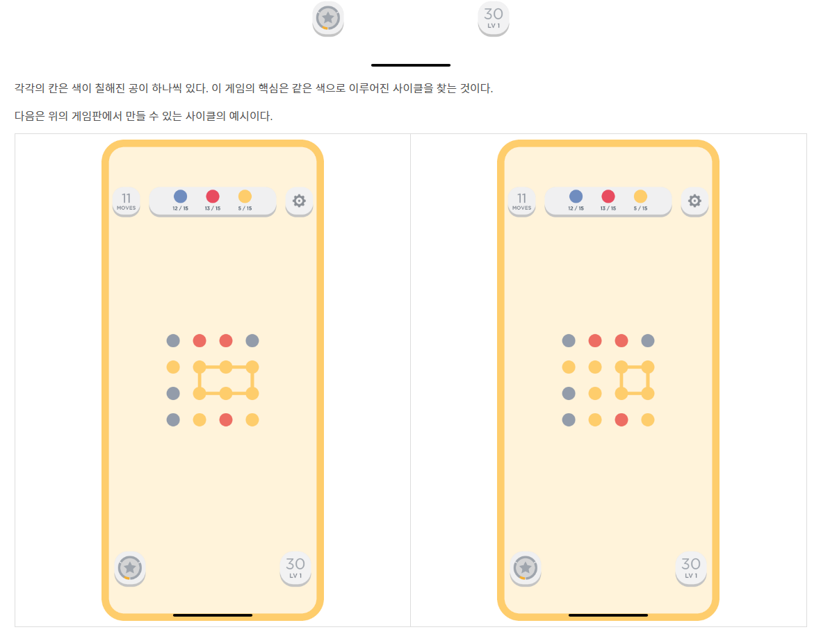3. 사이클은 같은 색의 점으로만 이루어져야 합니다.