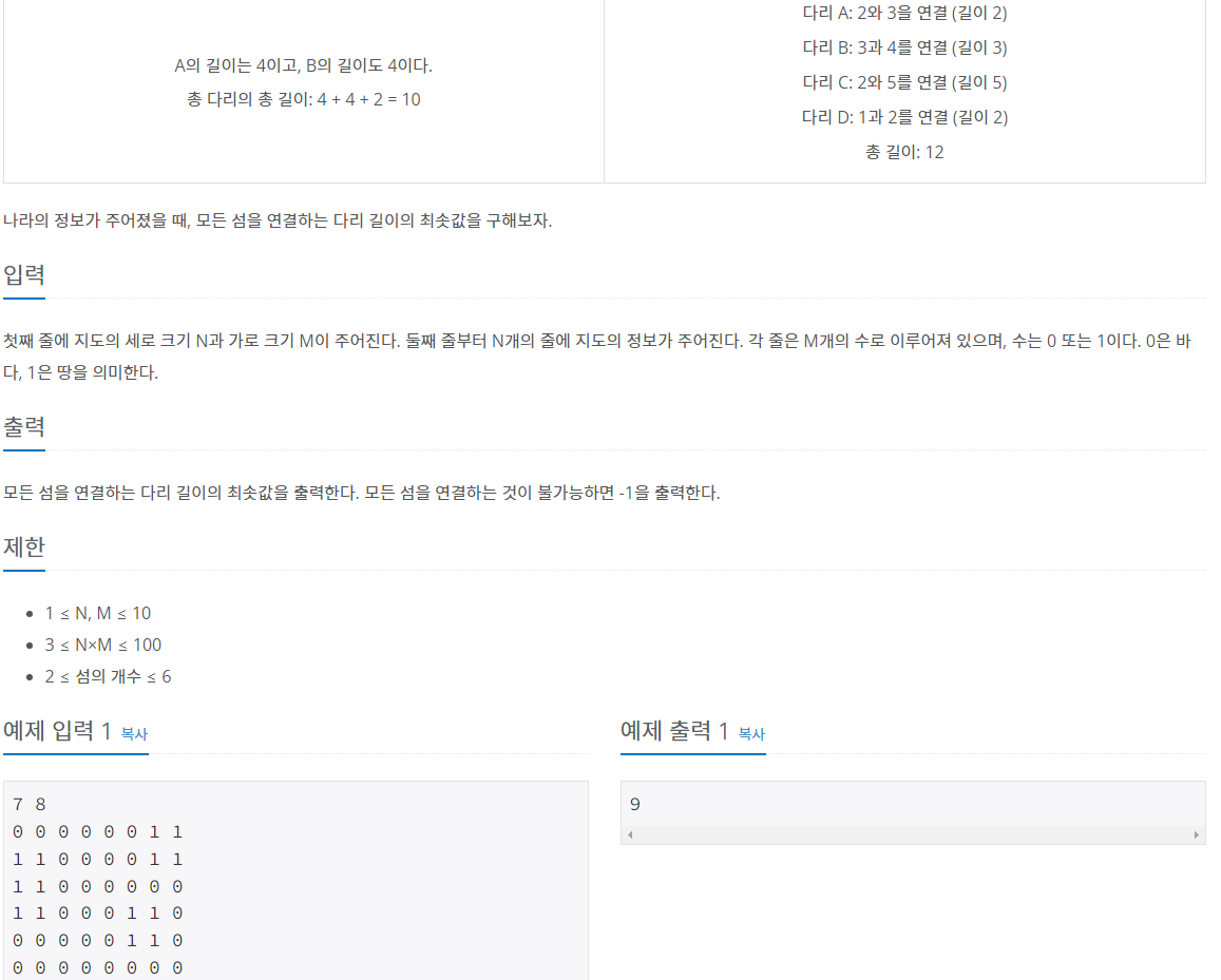 if(check) //모든 섬이 연결되지 않았을 때