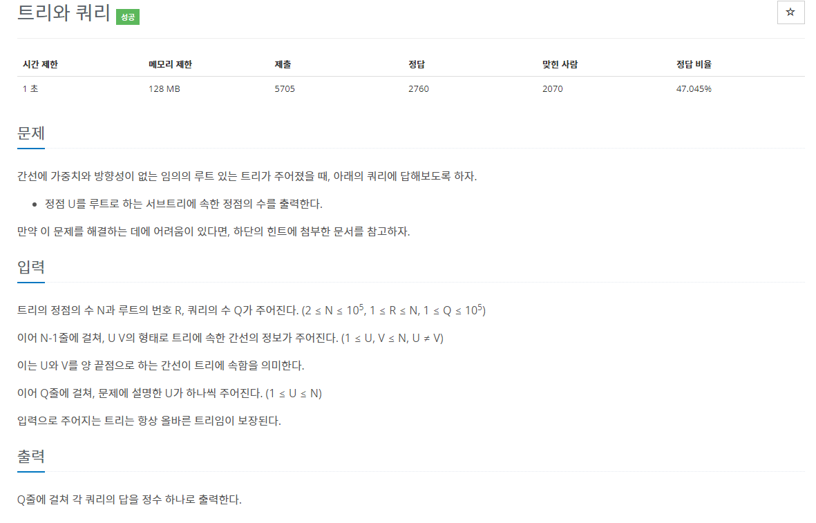 입력받은 루트 노드를 기준으로 하위 노드로 넘어가면서 존재하는 정점의 수를 DP[]에 저장하였습니다.