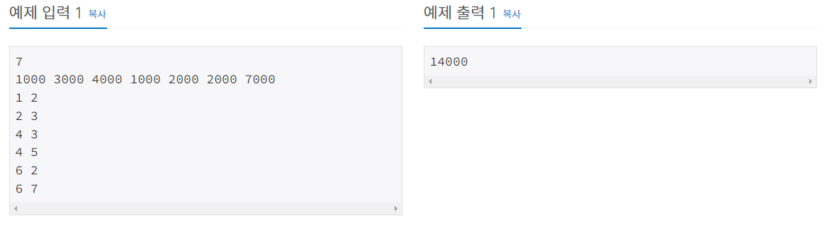 1. 그래프에 대한 정보와 마을의 가중치(주민)이 주어집니다.
