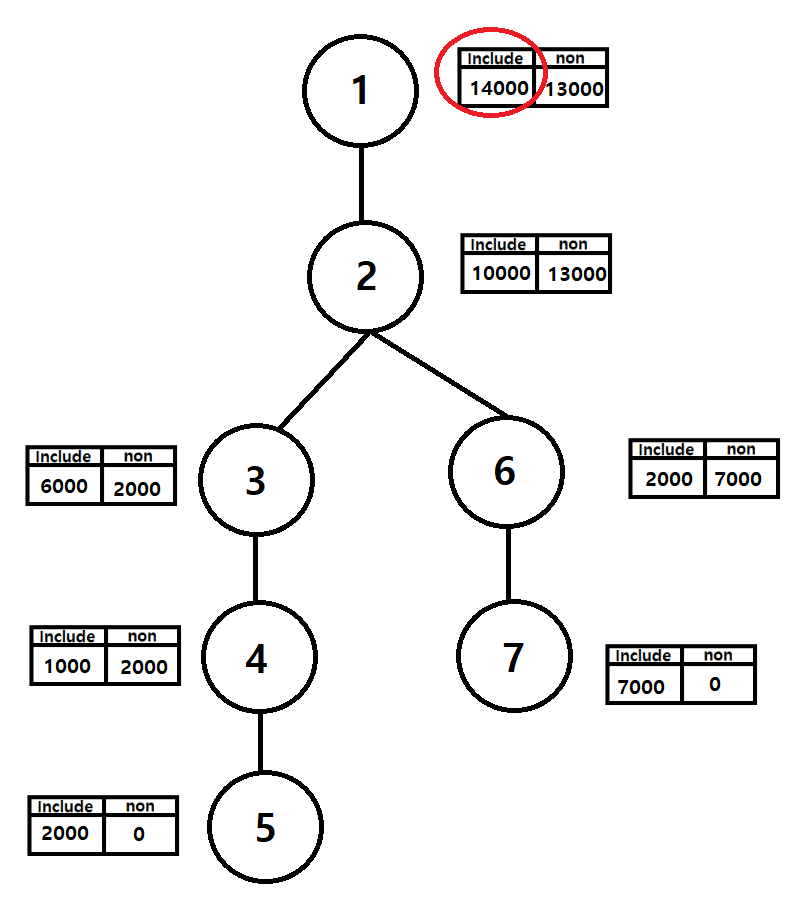int nonRootInclude = search(1, 0); //루트 정점 우수 마을 아닐 때