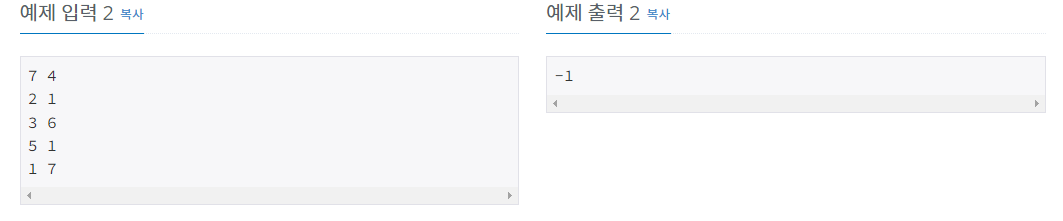 첫째 줄에 사람의 수 N(3 ≤ N ≤ 4,000), 친구 관계의 수 M(0 ≤ M ≤ 4,000)이 주어진다. 둘째 줄부터 M개의 줄에는 친구 관계를 의미하는 두 정수 A, B가 주어진다. 친구 관계는 A와 B, 그리고 B와 A가 친