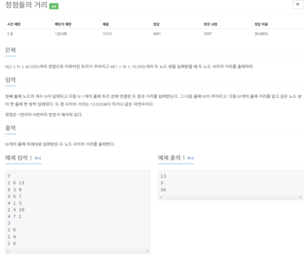 1. 트리에 대한 정보가 주어지고 M개의 두 노드 사이의 거리를 결과로 출력합니다.
