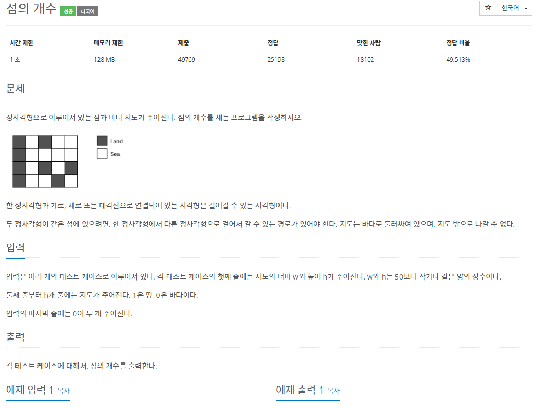 - bfs함수를 사용하여 각 테스트 케이스의 섬의 개수를 구하였습니다.