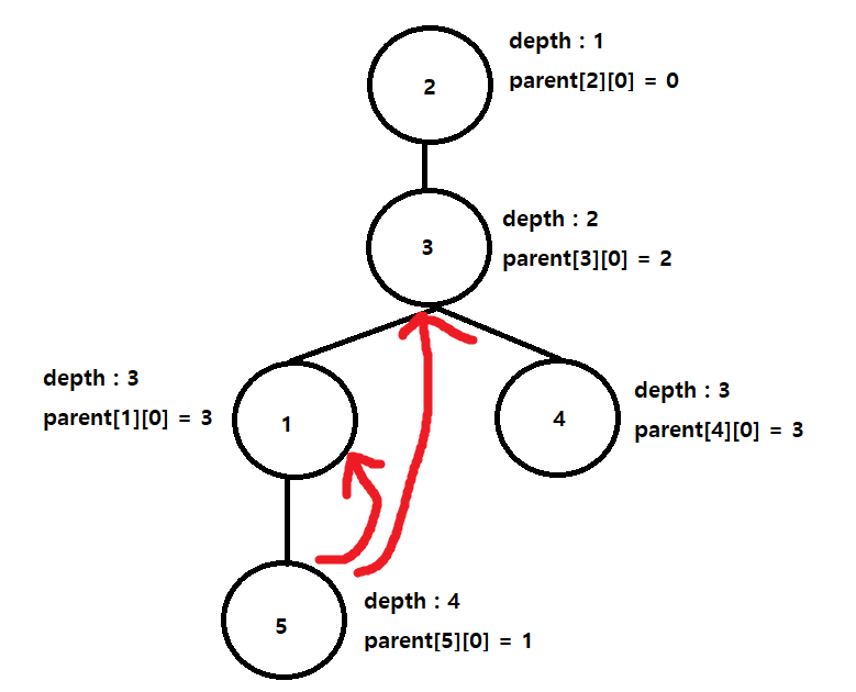 parent[5][1] = 2¹위에 있는 부모 노드 : 3