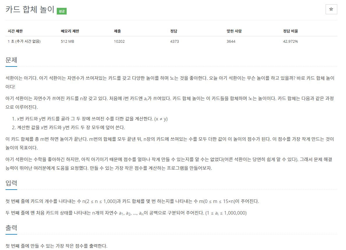 15903번: 카드 합체 놀이