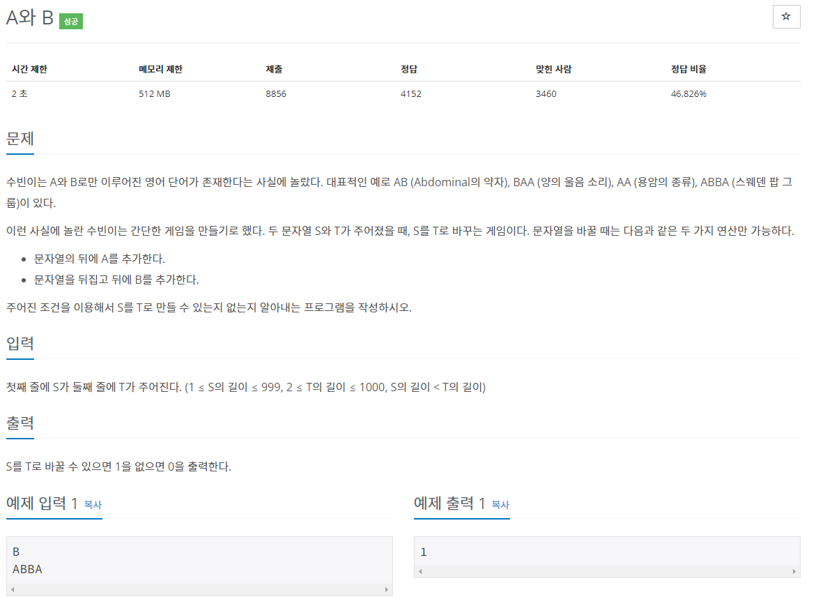 수빈이는 A와 B로만 이루어진 영어 단어가 존재한다는 사실에 놀랐다. 대표적인 예로 AB (Abdominal의 약자), BAA (양의 울음 소리), AA (용암의 종류), ABBA (스웨덴 팝 그룹)이 있다. 이런 사실에 놀란 수